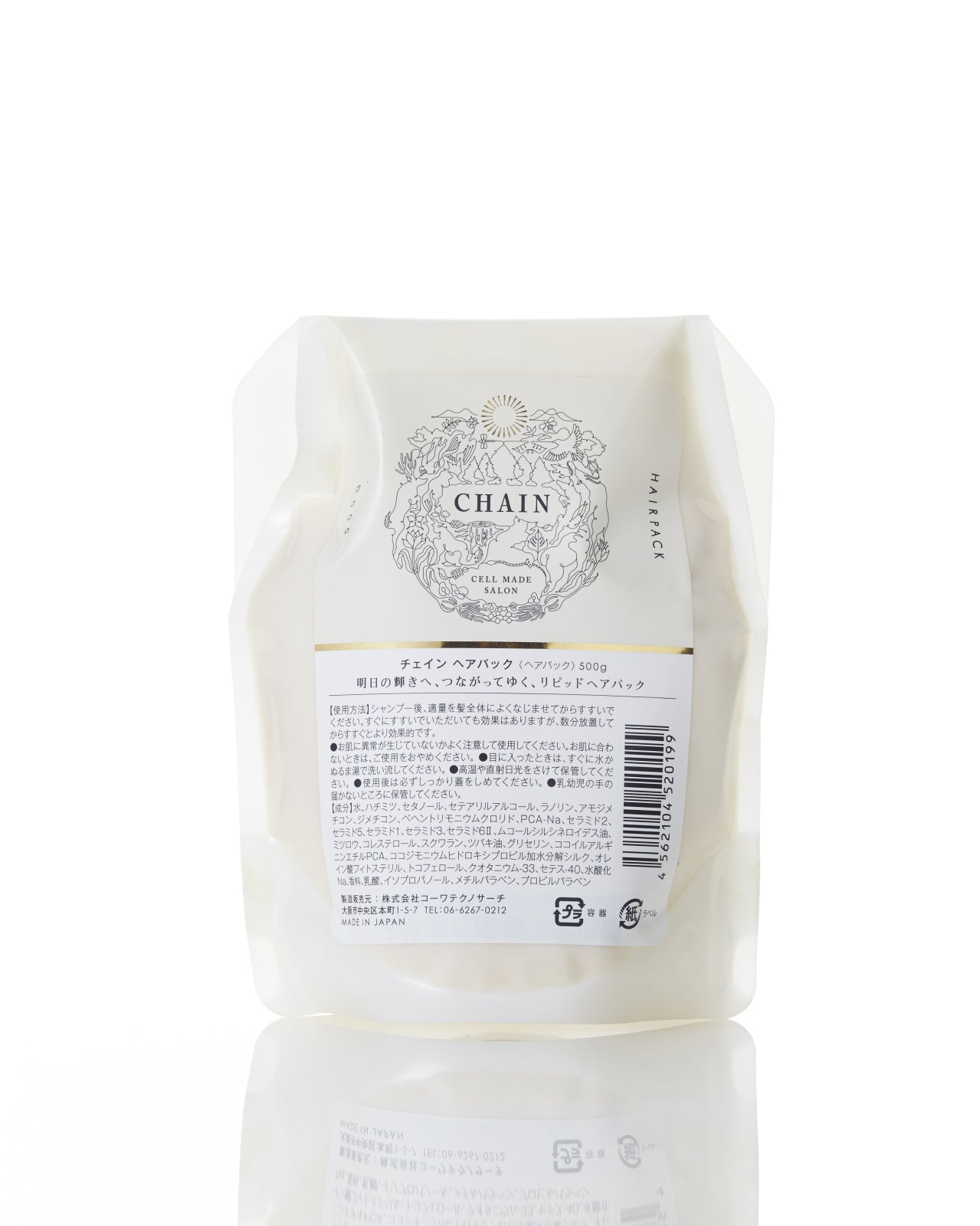 【CHAIN / ヘアパック】500g詰め替え用 髪に潤いを補い、髪の内側から立て直す。髪に必要な「セラミド」を配合した髪を「修復る」ことを考えたヘアパック。