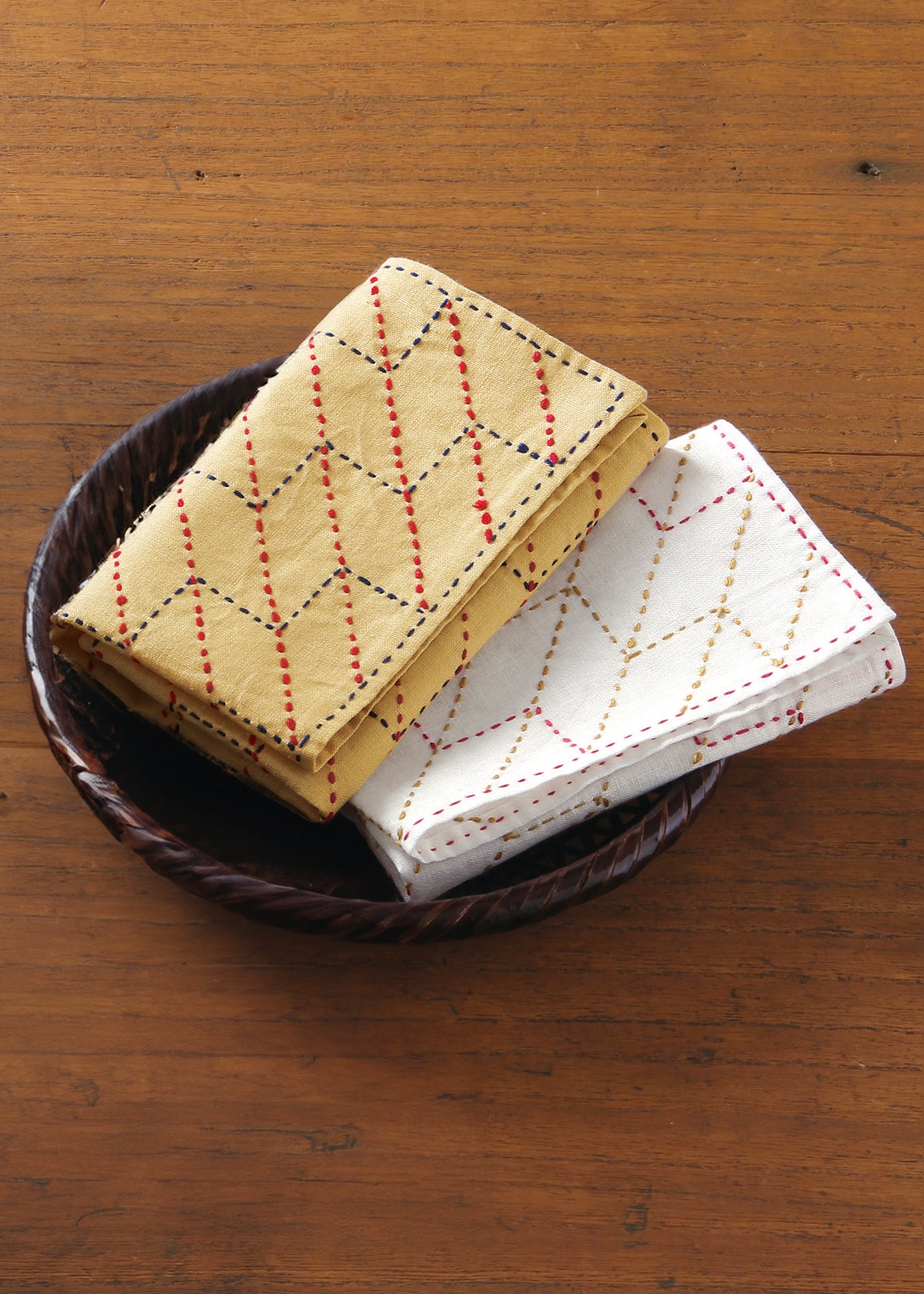 綿麻クロスに彩りを施す一目刺しの大判ふきん まとめて購入