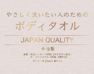 やさしく丁寧に洗いたい人に向けたボディウォッシュタオル。MADE IN JAPAN今治製。まるで赤ちゃんの沐浴のような肌ざわり。表面裏面にスクワラン配合のレーヨン素材、中面にDRY-Xのポリエステル素材の三重ガーゼ。吸水性・速乾性に優れ衛生的なコットンライクなボディタオルです。