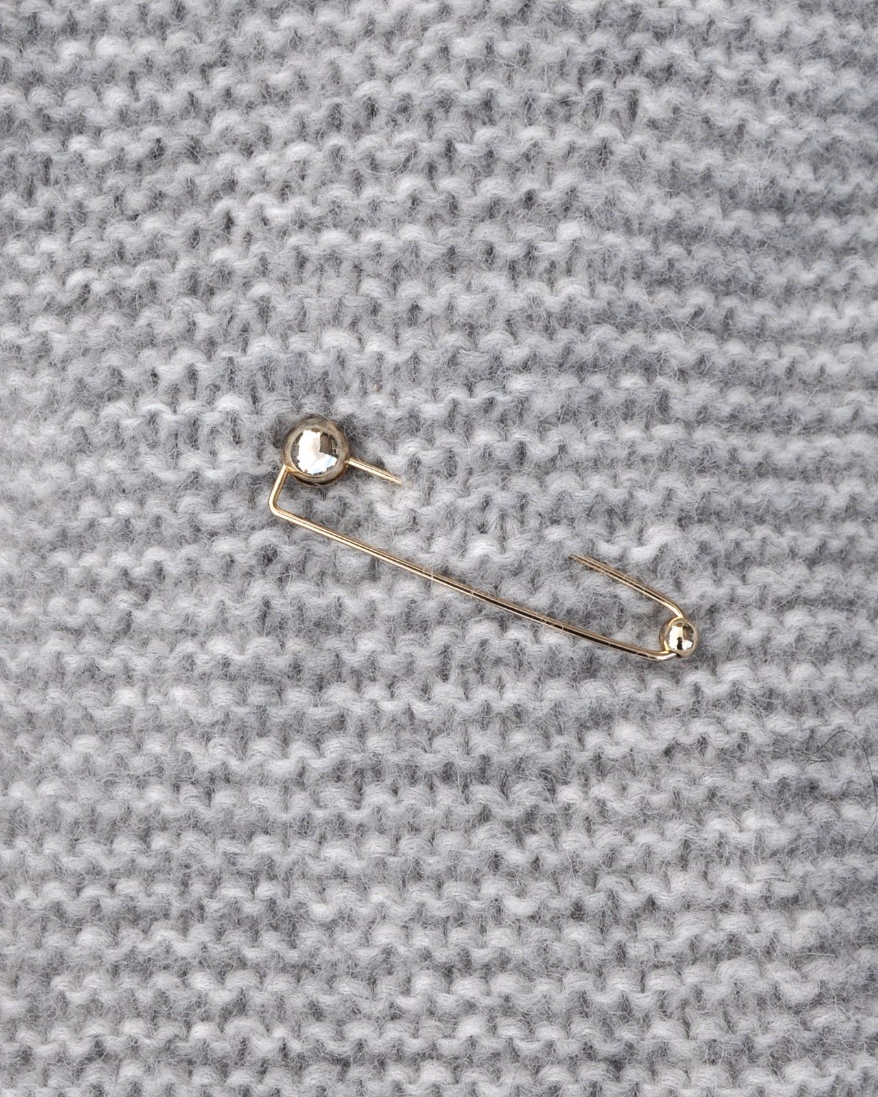 シンプルなデザインのニットピンは、どんなコーディネートにも合わせやすく、ひとつ持っていると便利です。