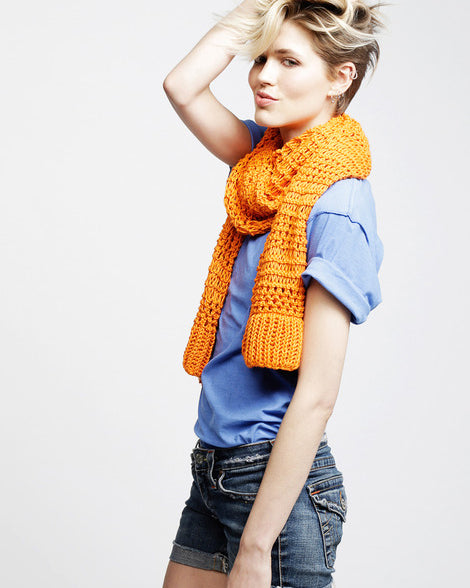 ざっくりしたかっこいいゴム編みと、透かし編みで編むスカーフ。