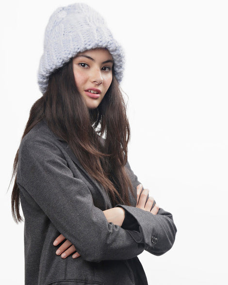 太い糸と大きな棒針で編むシンプルな形は、あなたのケーブル編みの技術を