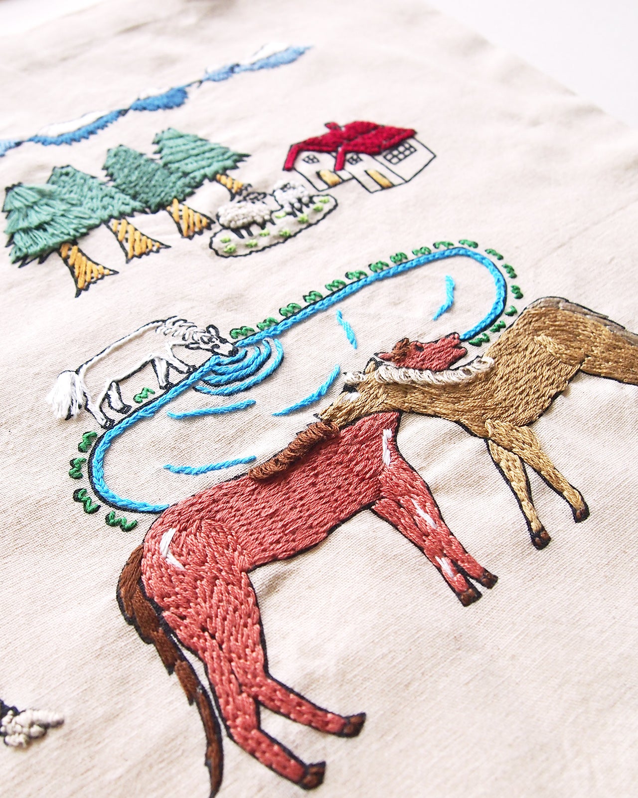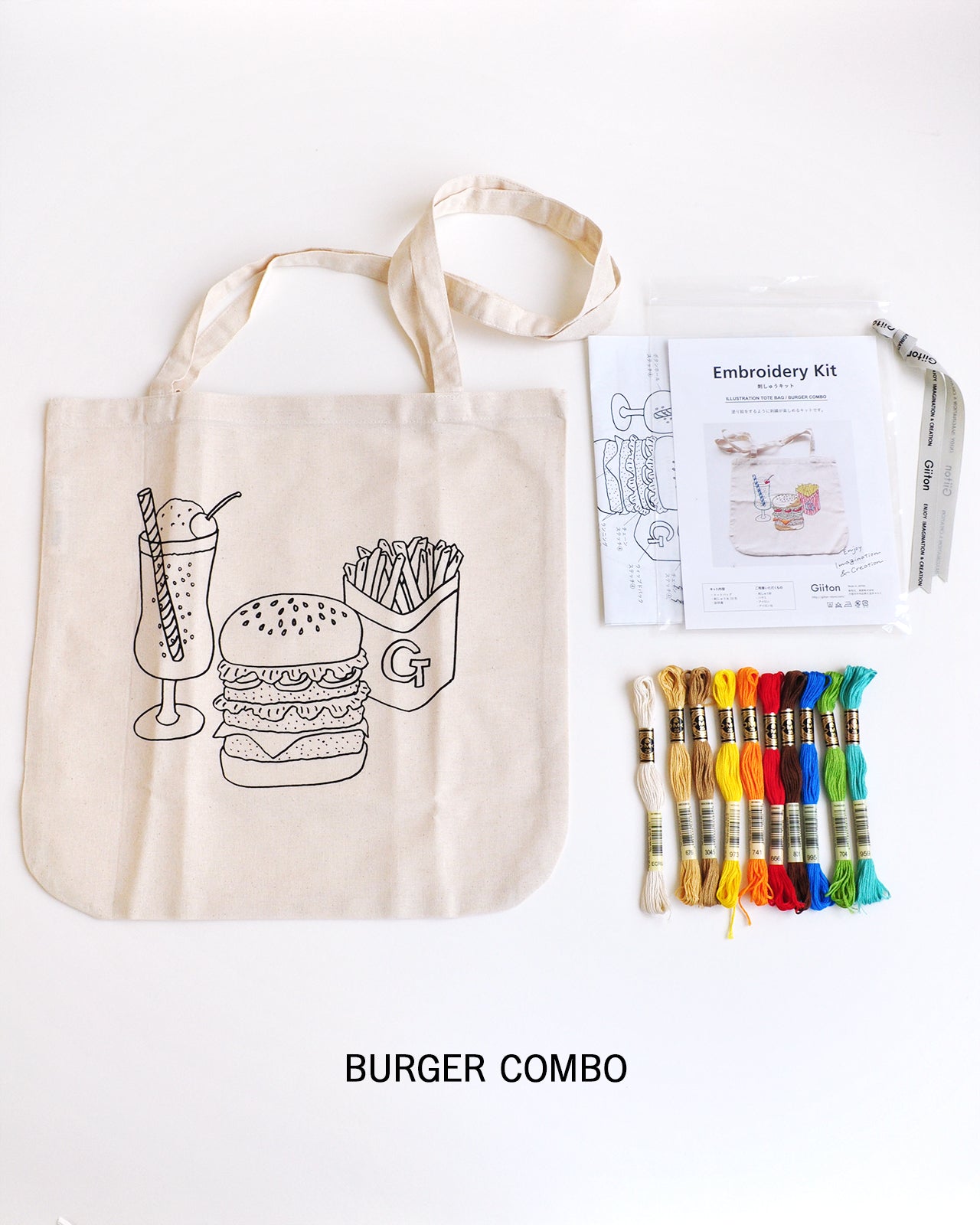 • 【EMBROIDERY ILLUSTRATION TOTE BAG KIT】イラストがプリント済みのトートバッグに刺繍するキット