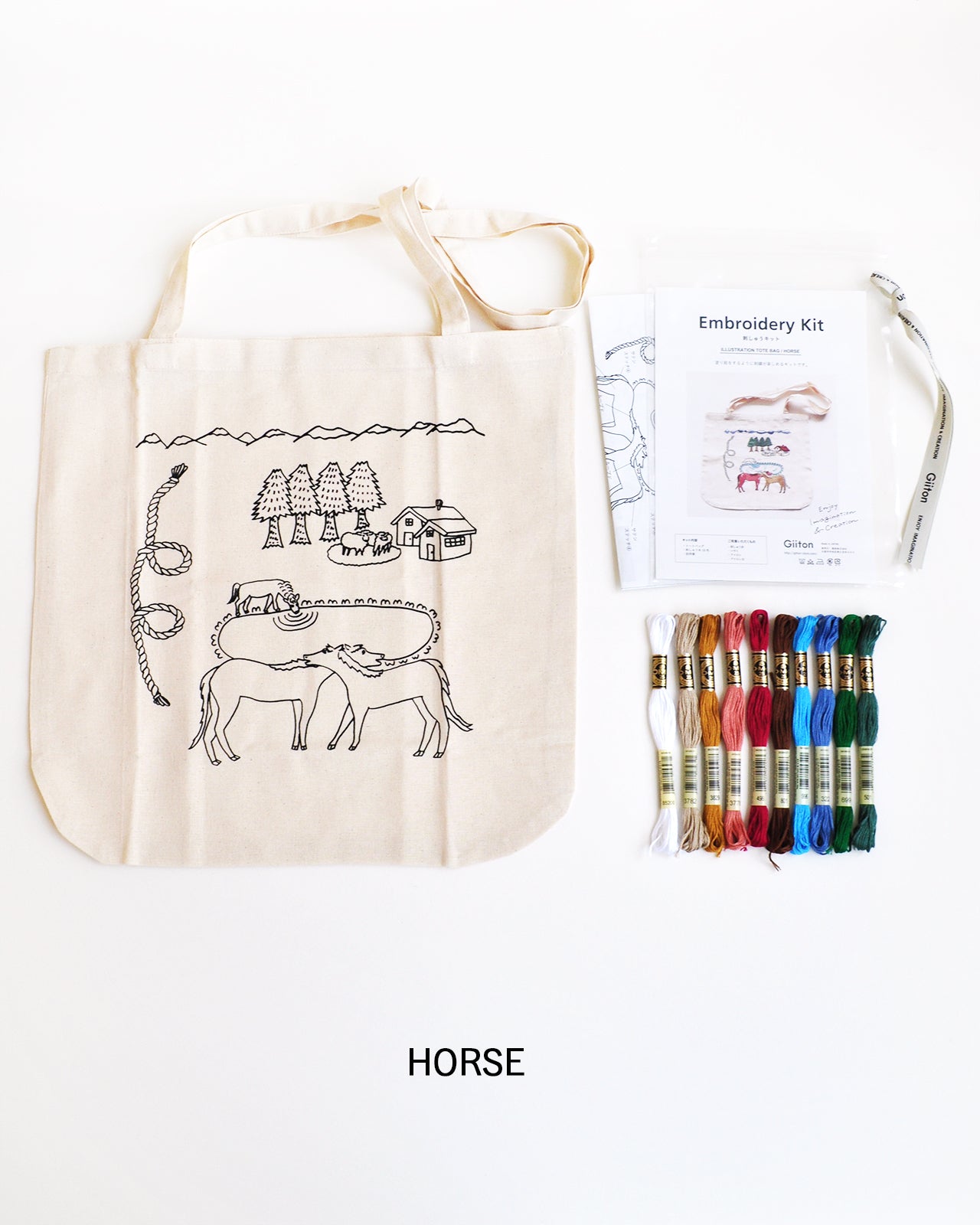 【EMBROIDERY ILLUSTRATION TOTE BAG KIT】イラストがプリント済みのトートバッグに刺繍するキット