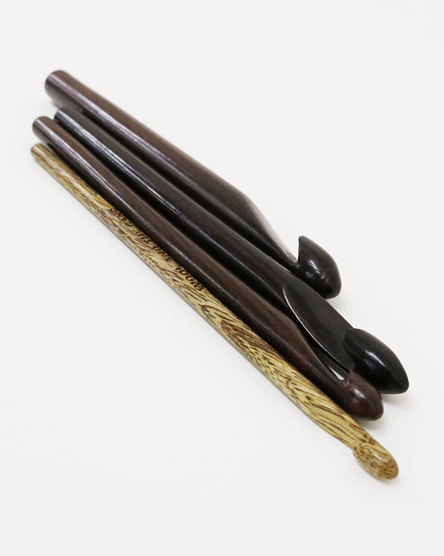 ※ローズウッドとマンゴーウッド製のかぎ針は天然素材の為、色や柄は1本1本