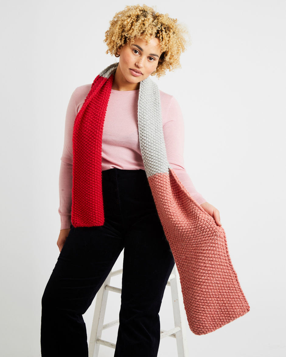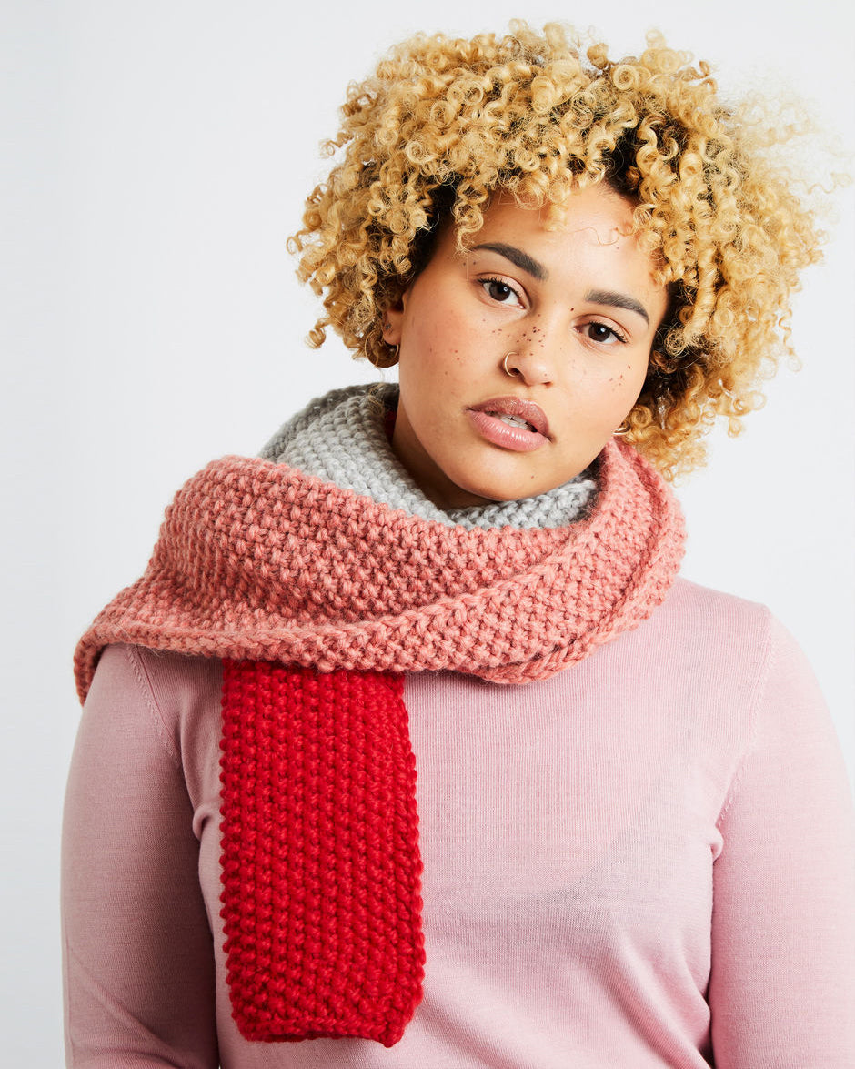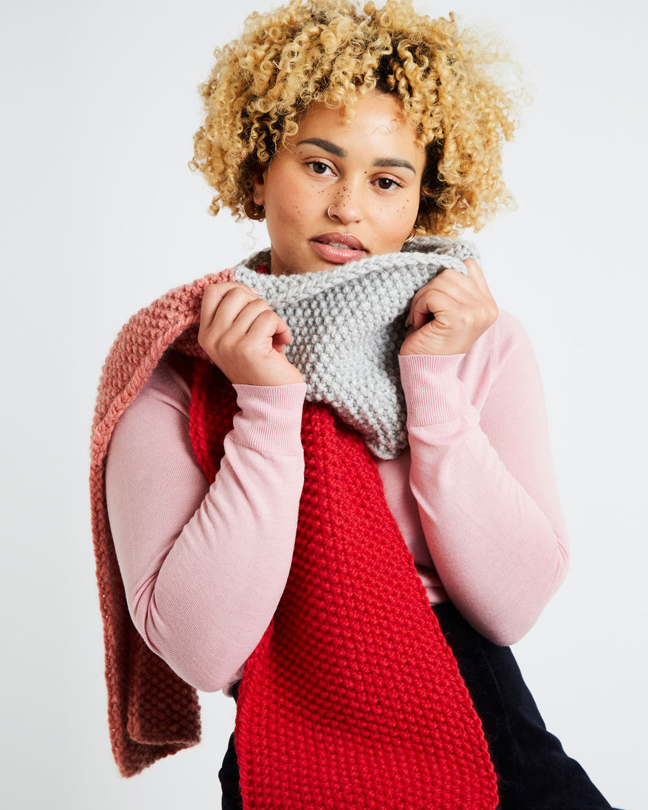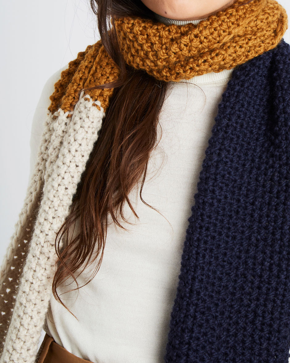 やわらかく、ふわふわのかのこ編みで編むこの簡単なマフラーは、