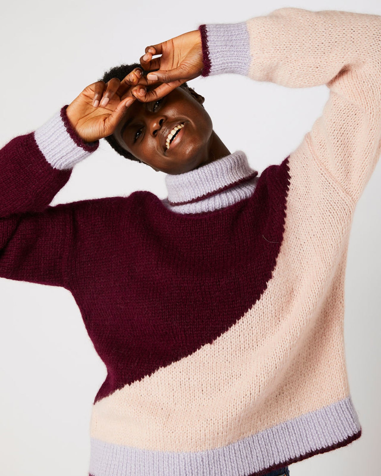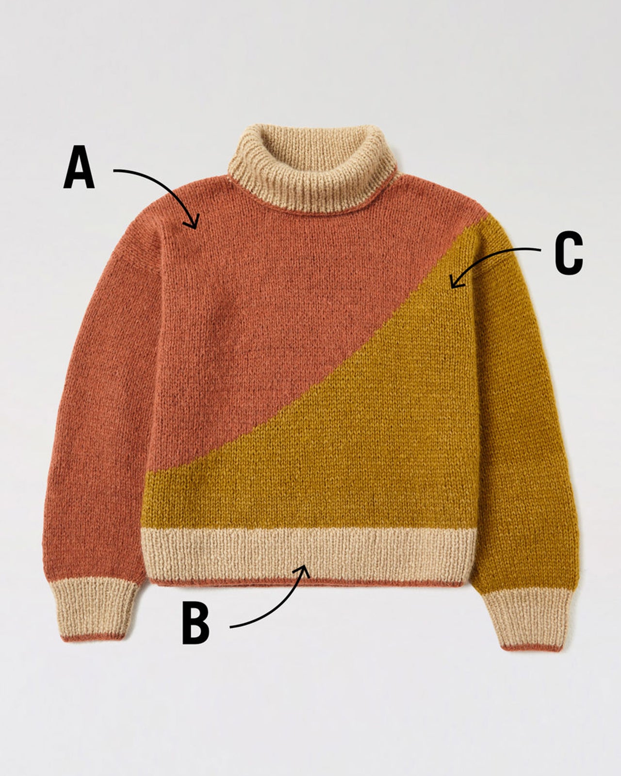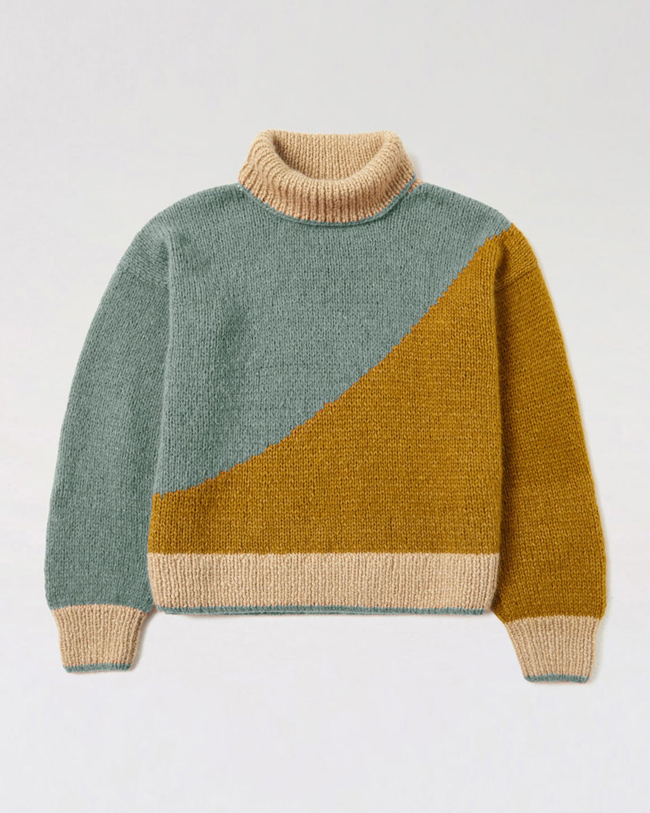 【EVERYWHERE SWEATER / PATTERN SET】棒針で編むカラーブロックが美しいハイネックセーターの編み物パターン