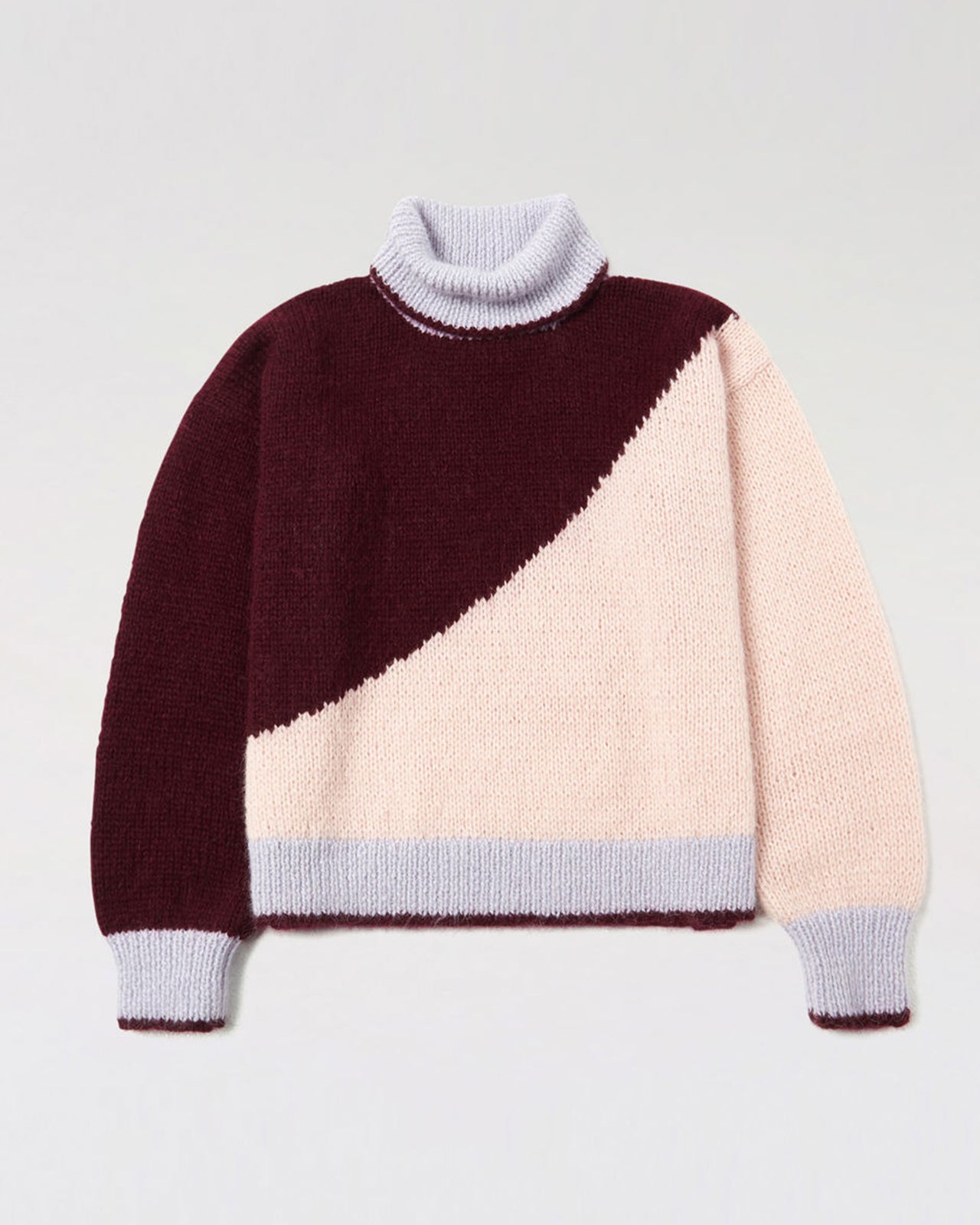 • 【EVERYWHERE SWEATER / PATTERN SET】棒針で編むカラーブロックが美しいハイネックセーターの編み物パターン