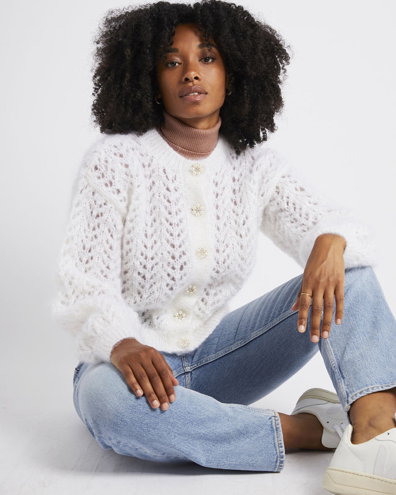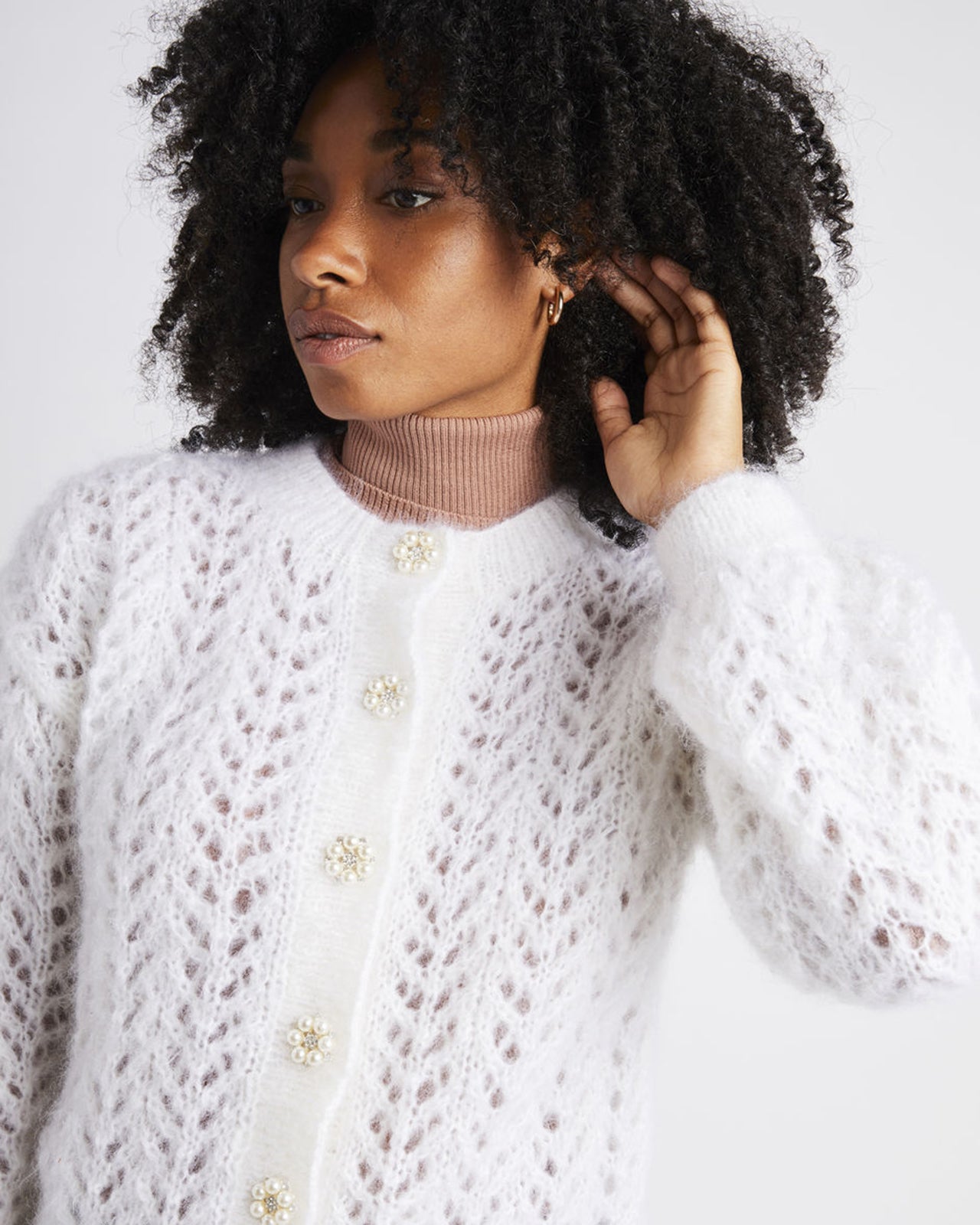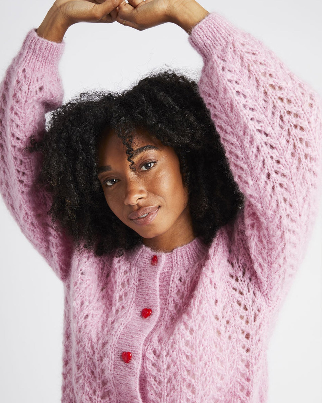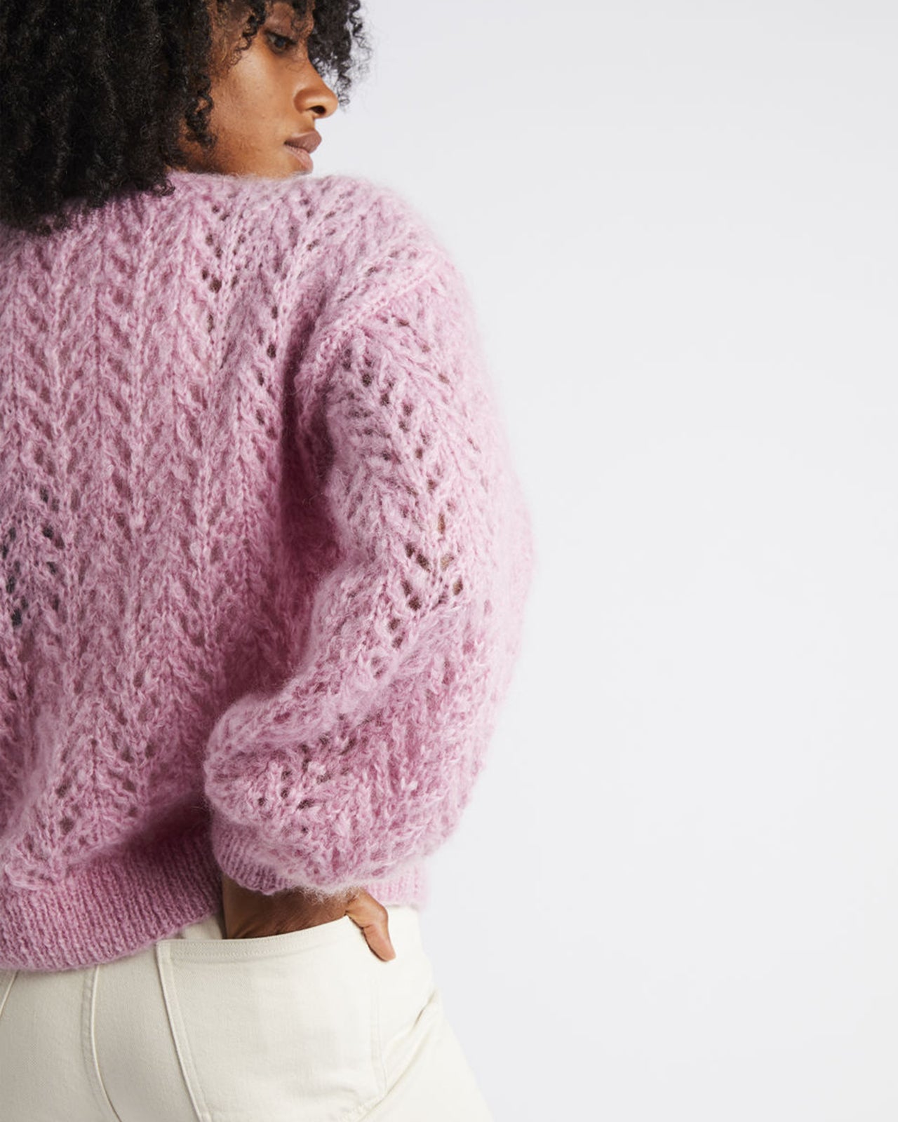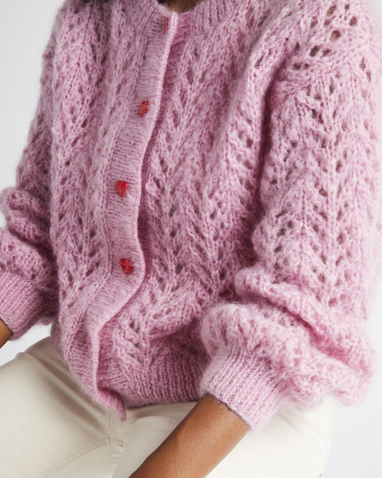 軽くてエアリーなTake Care Mohairで編む夢のようなカーディガンのパターンです。