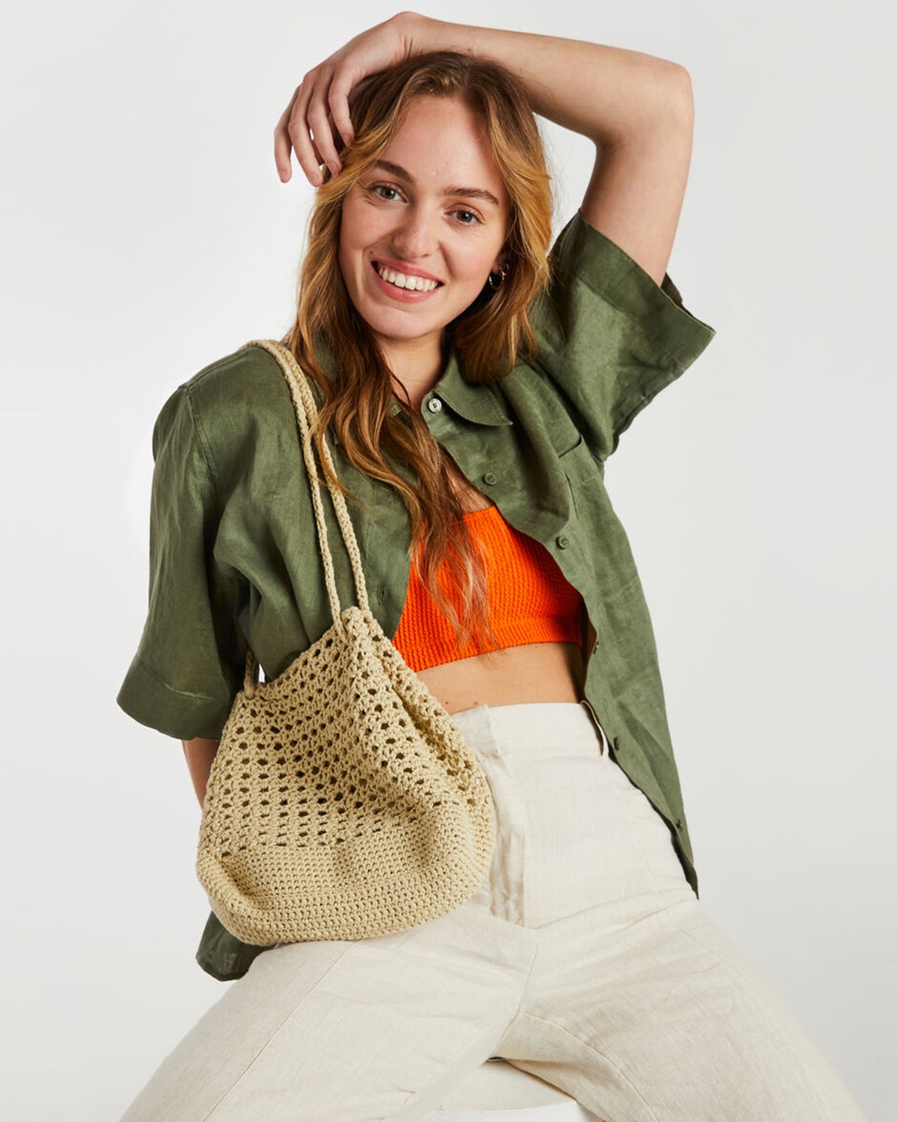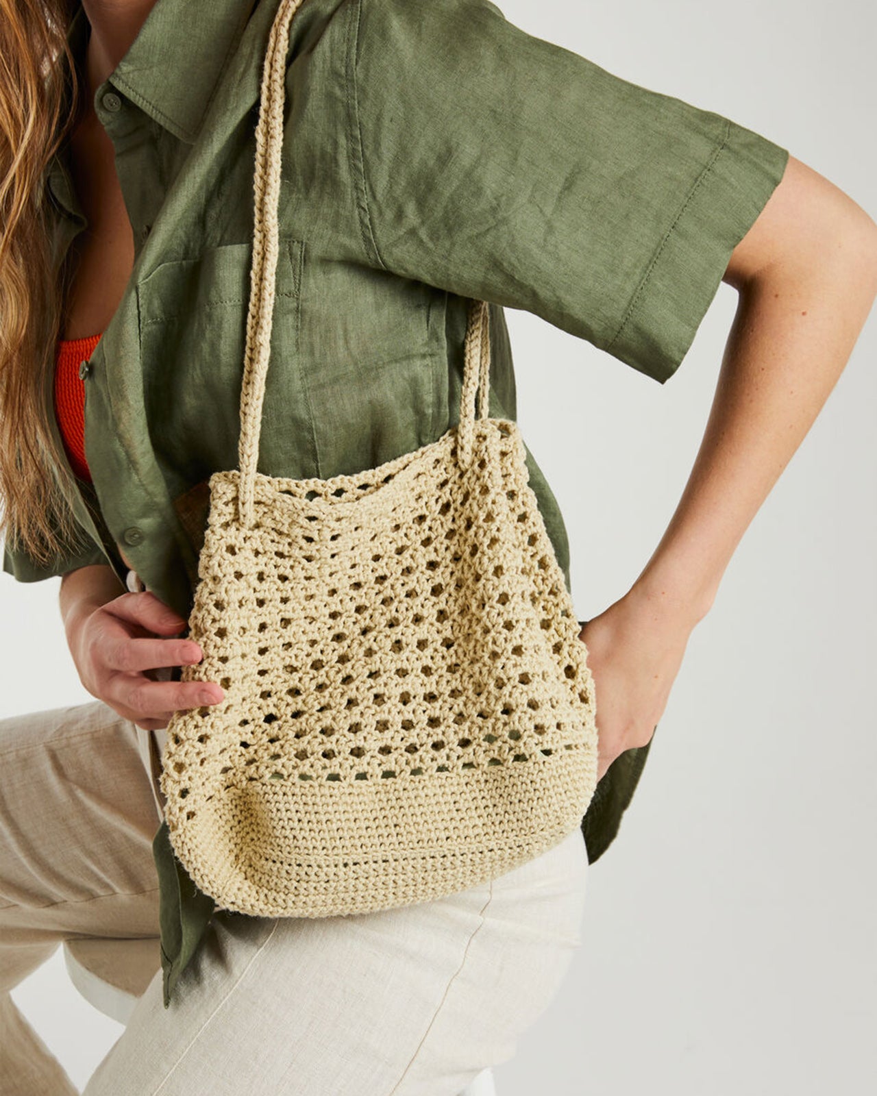 このSombra Bagは、植物由来の糸Buddy Hemp Yarnを使って編む、まさに2022年の