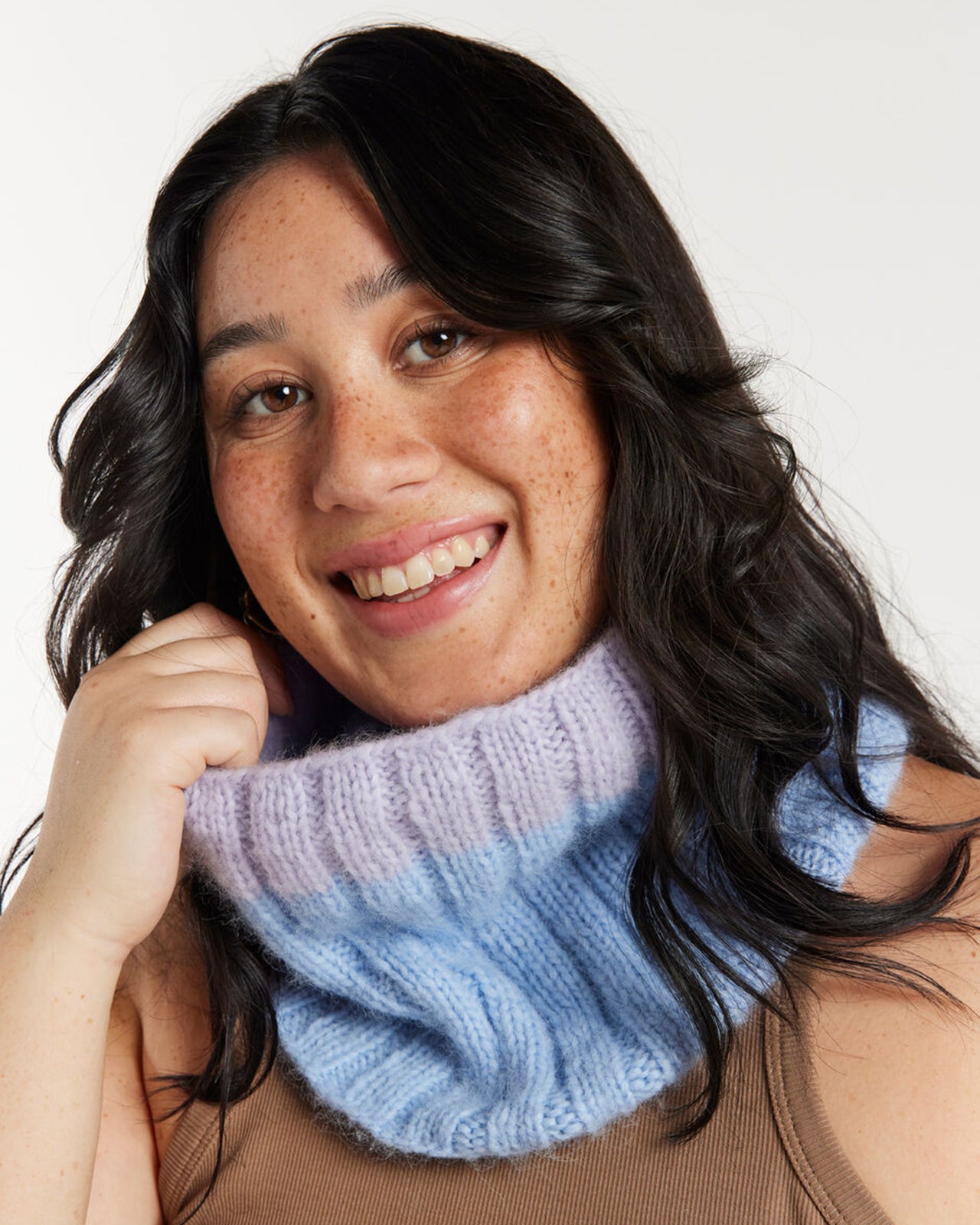 Sigrid Snoodは肌触りのよいfeeling Good Yarnを使った シンプルなデザインで、