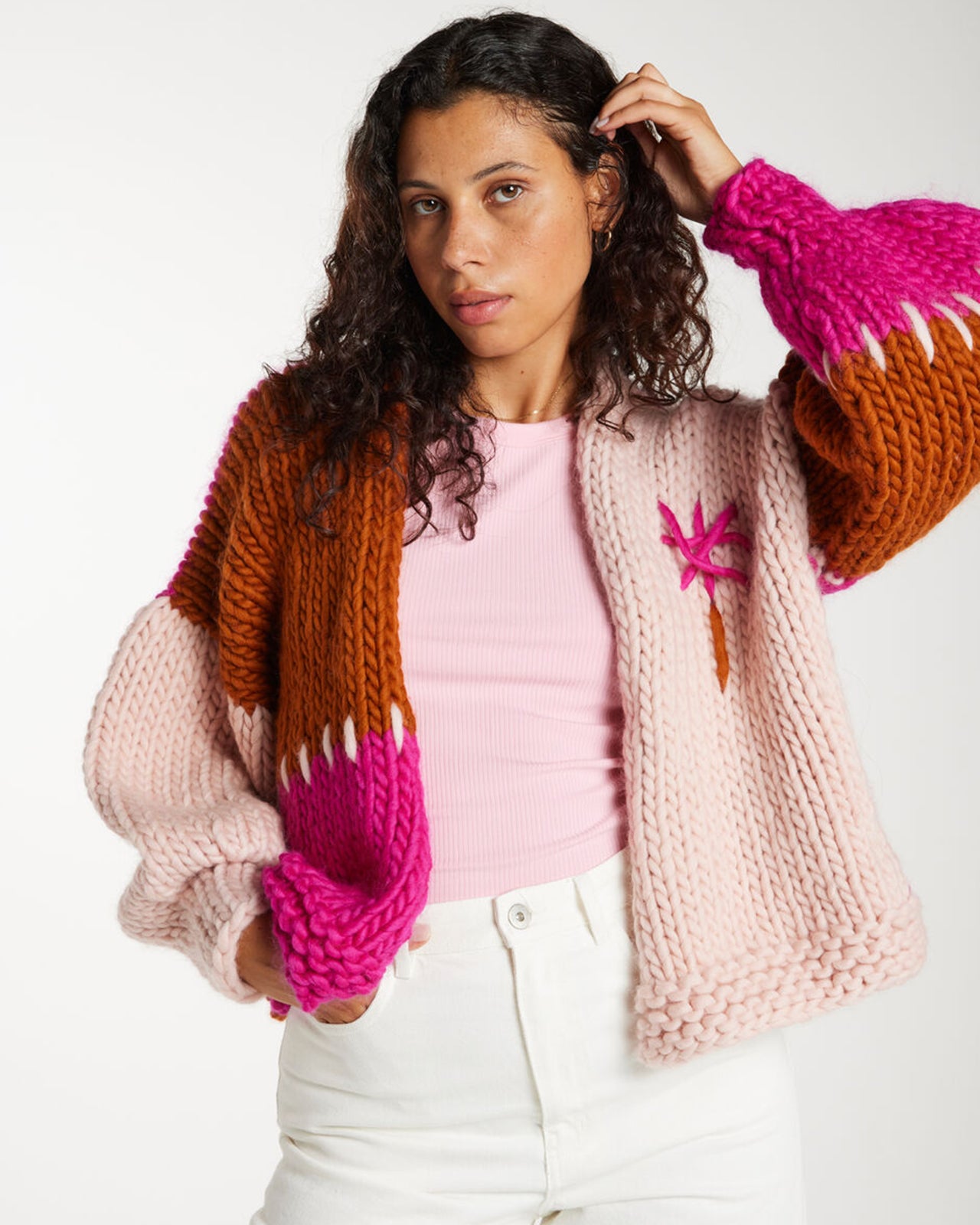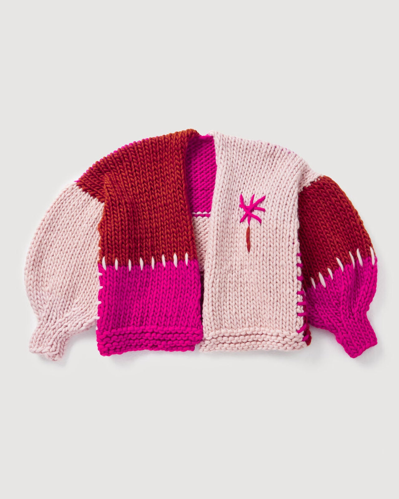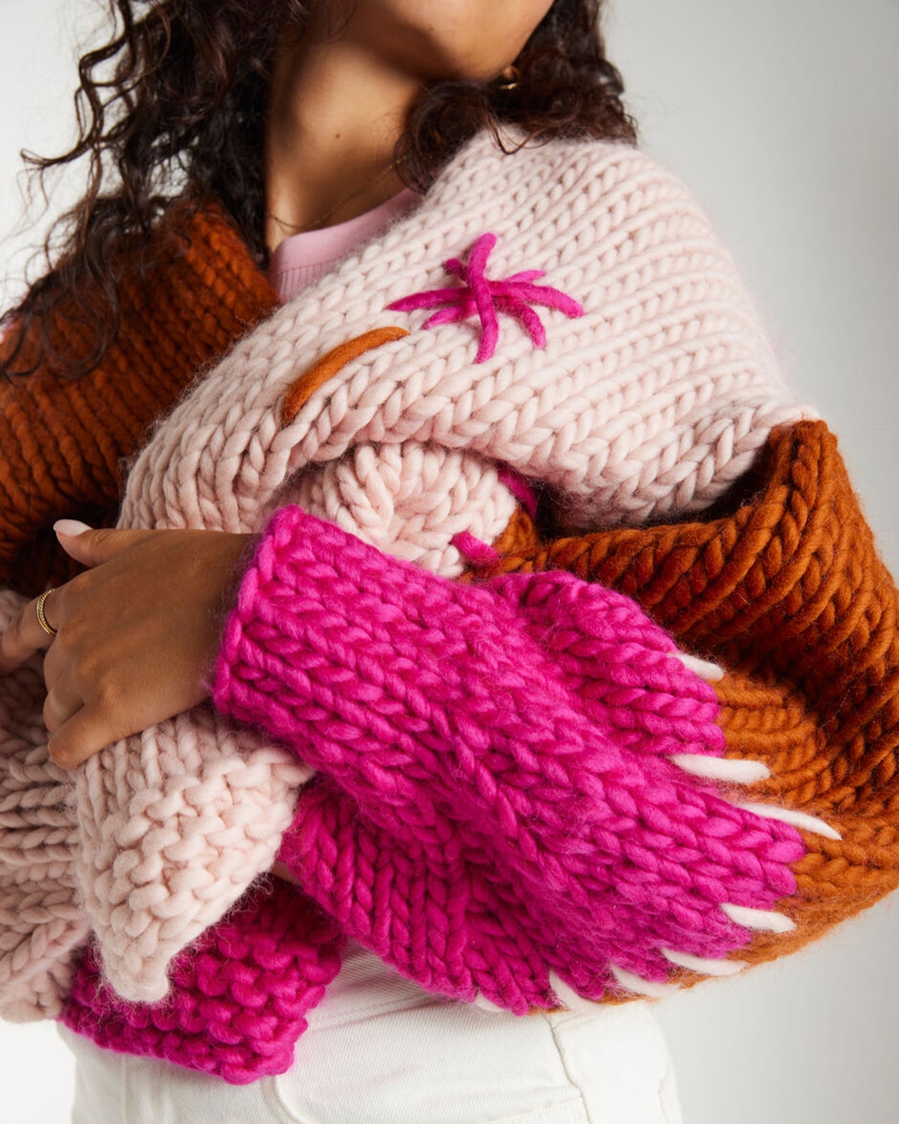 施されたチャンキーハンドメイドニットです。