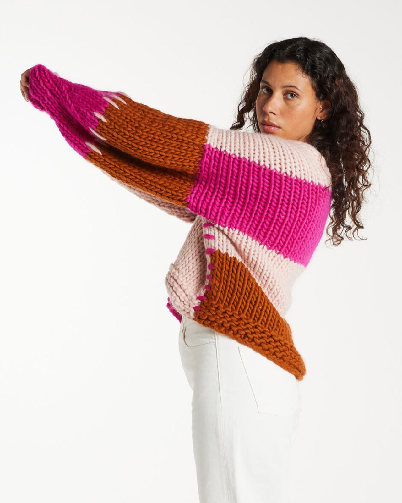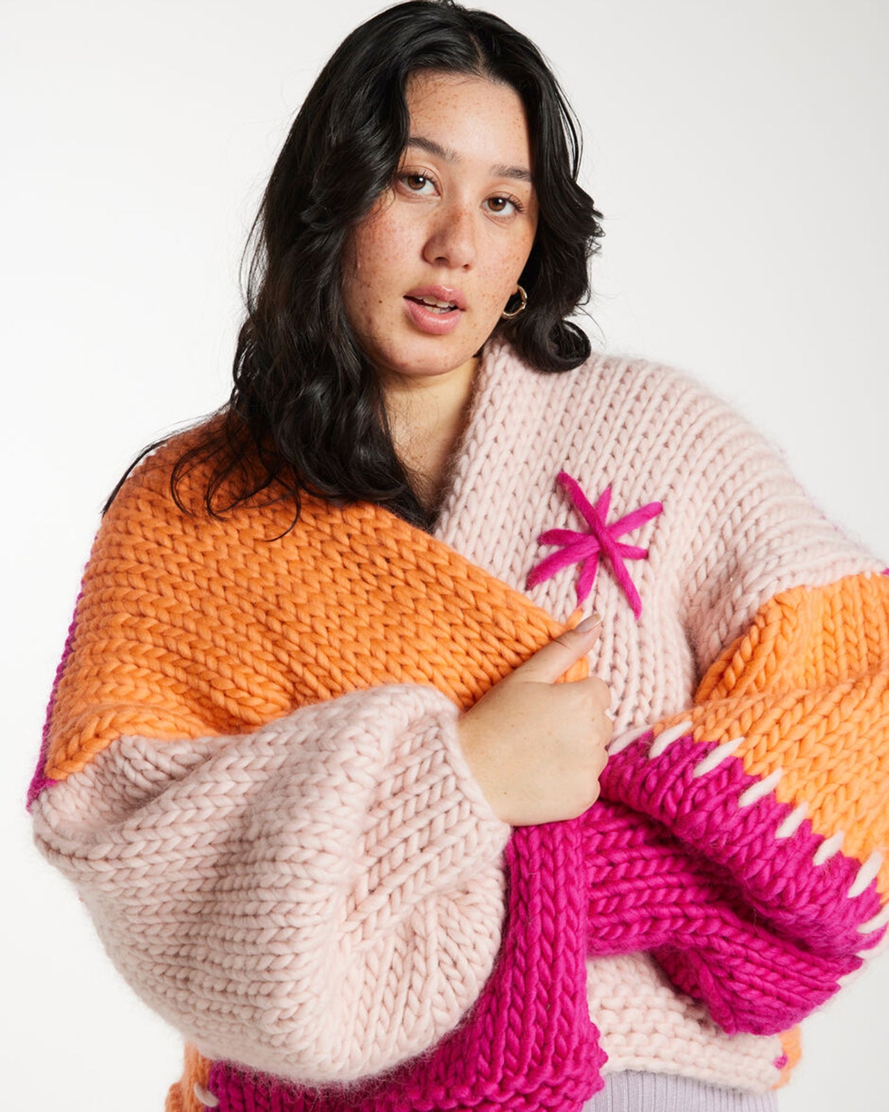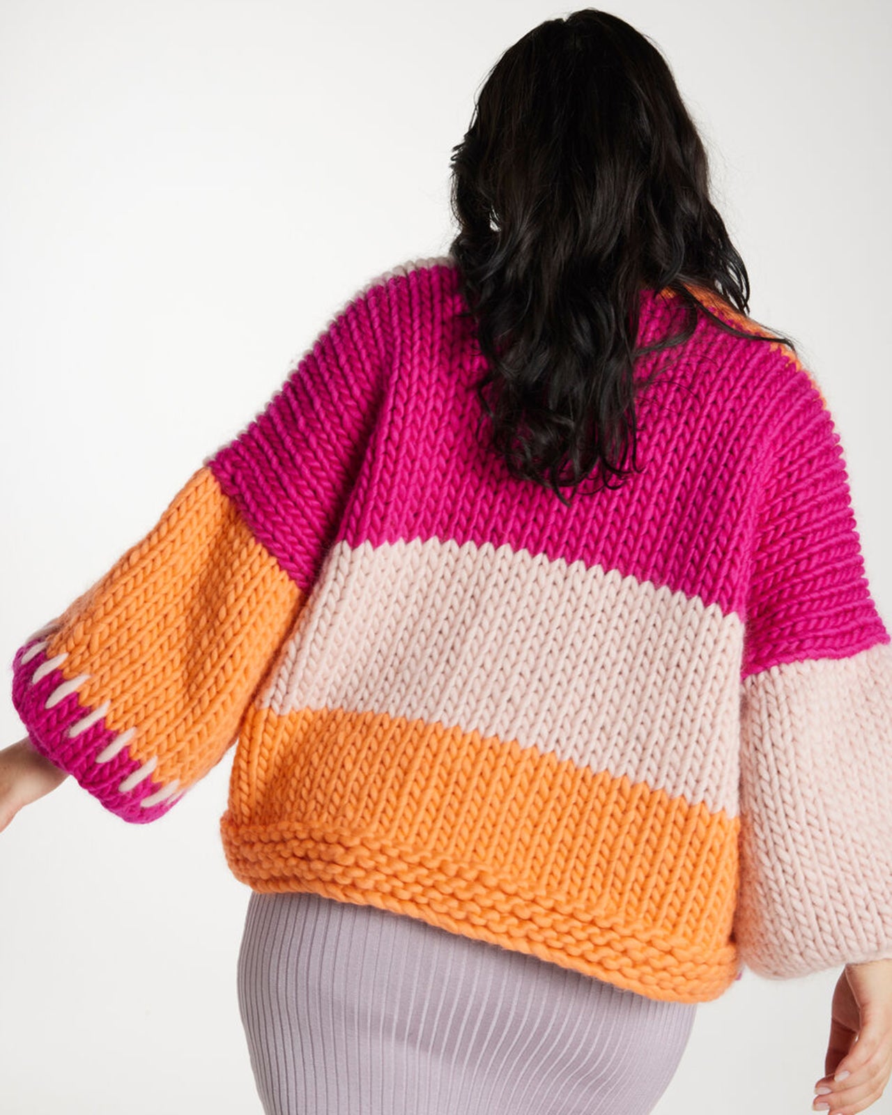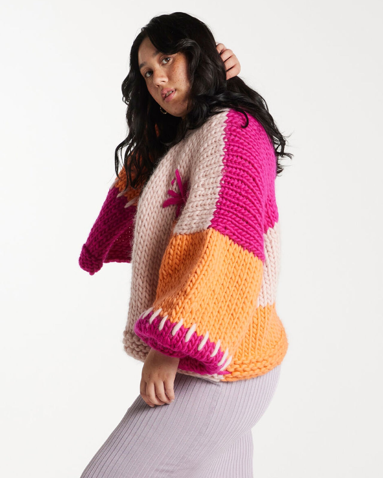施されたチャンキーハンドメイドニットです。
