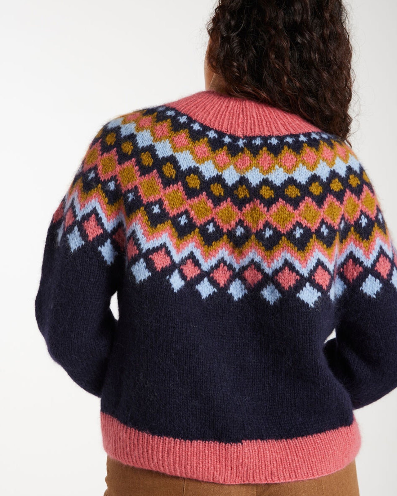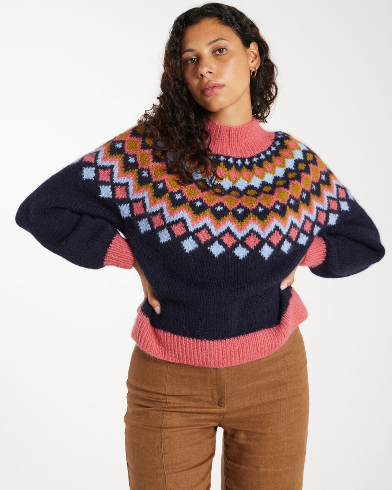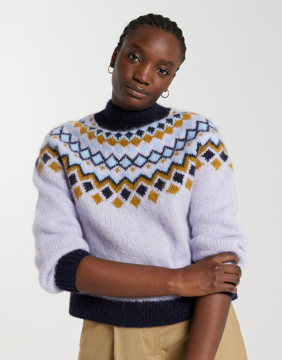 ノルディック柄と同じように合わせやすいJESPER SWEATERは フェアアイル柄で