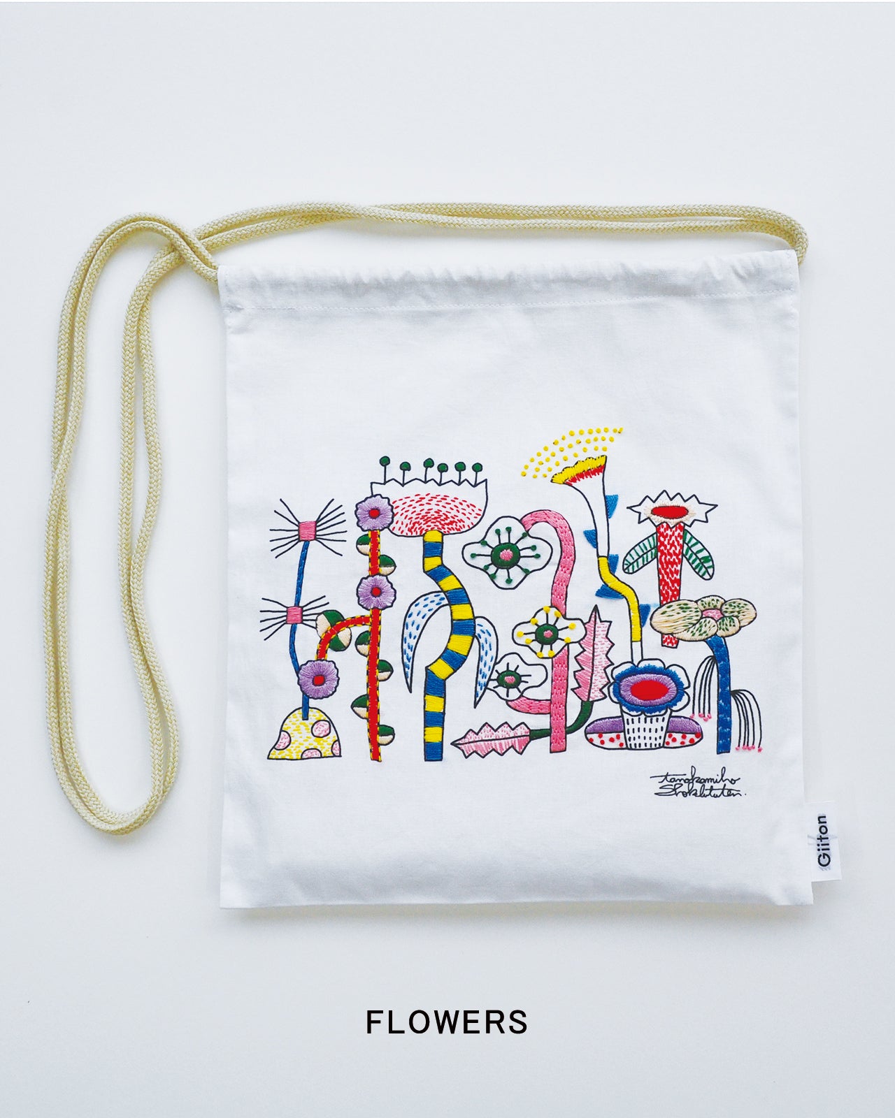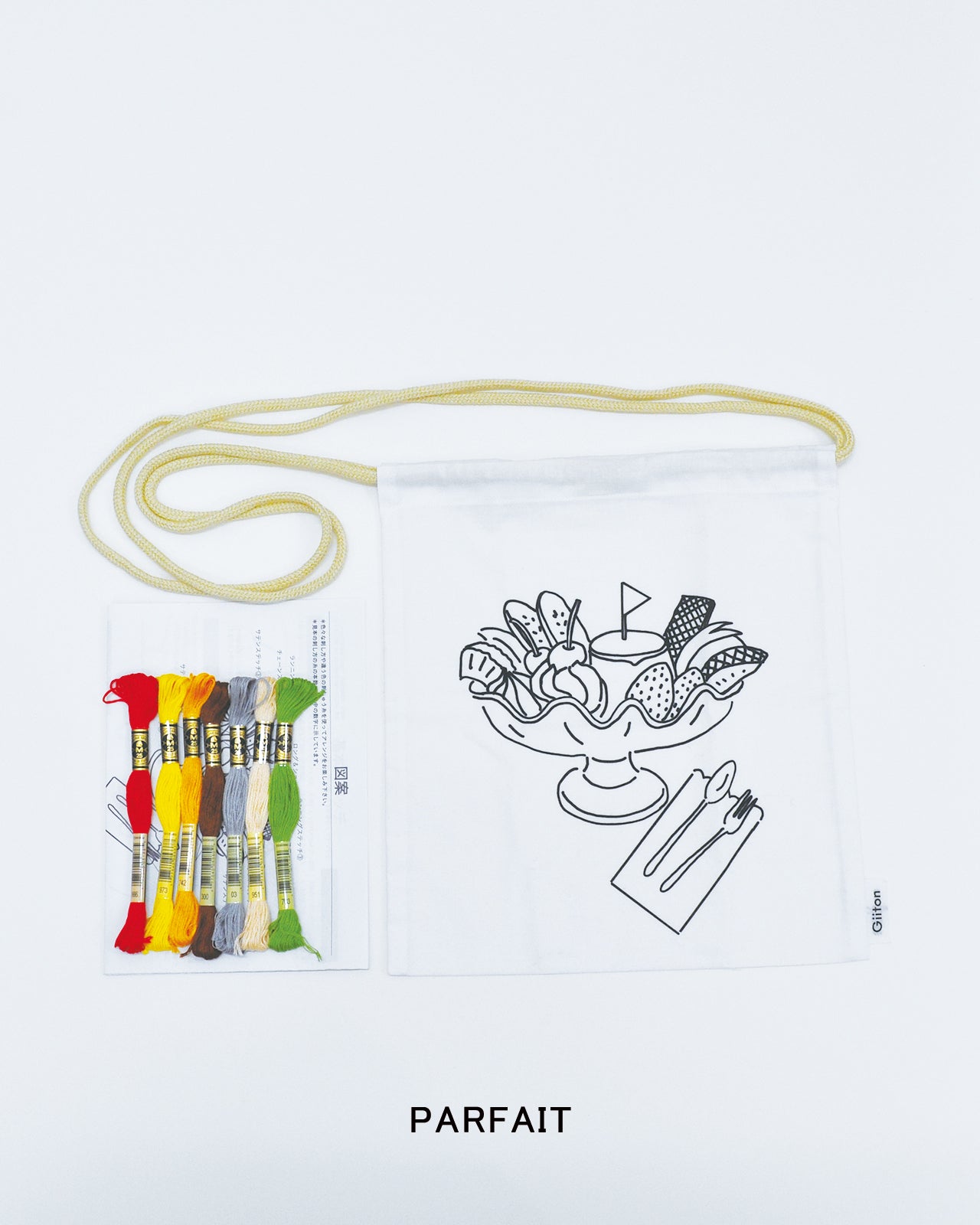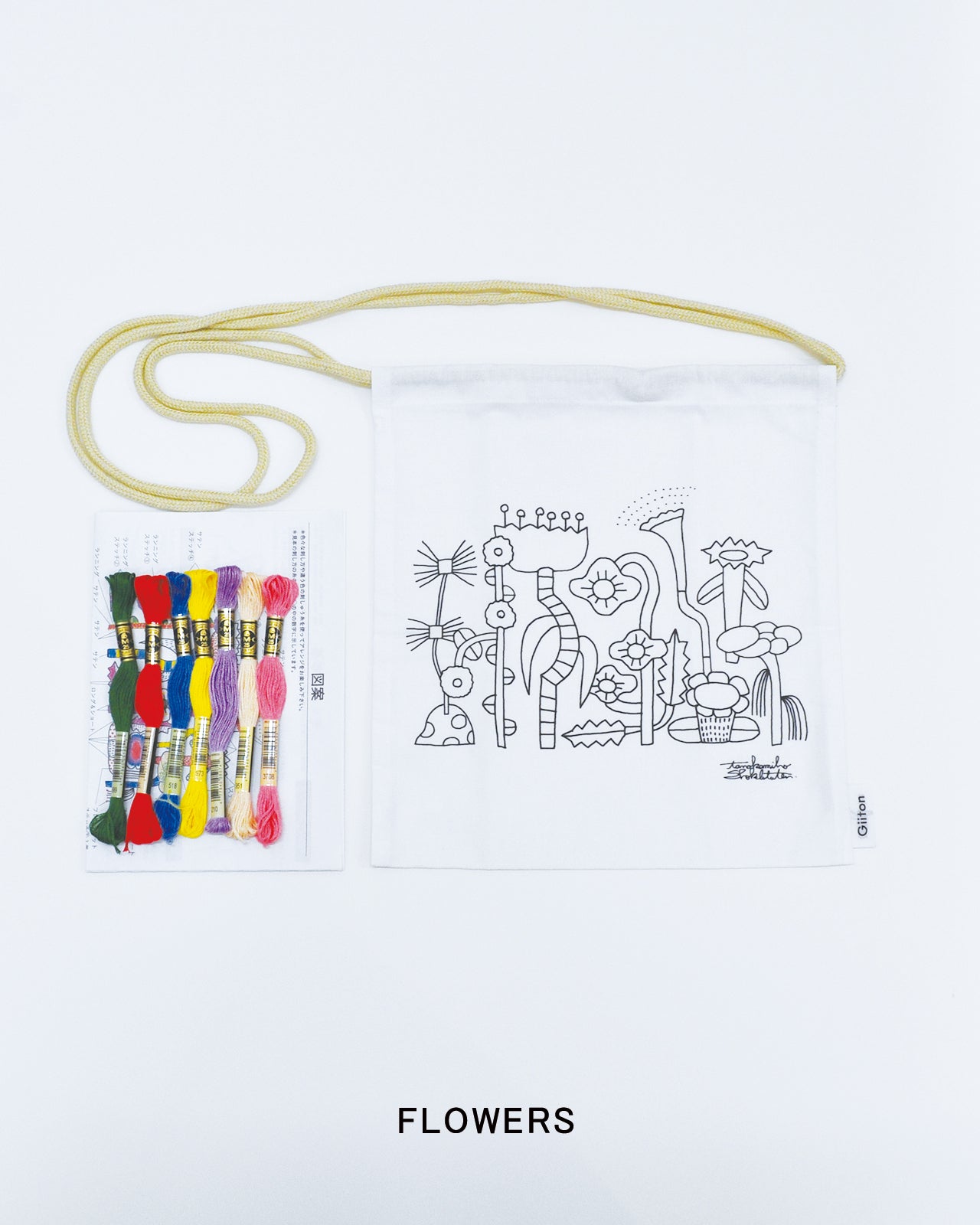 • 【EMBROIDERY ILLUSTRATION SACOCHE KIT】イラストがプリント済みのサコッシュに刺繍するキット