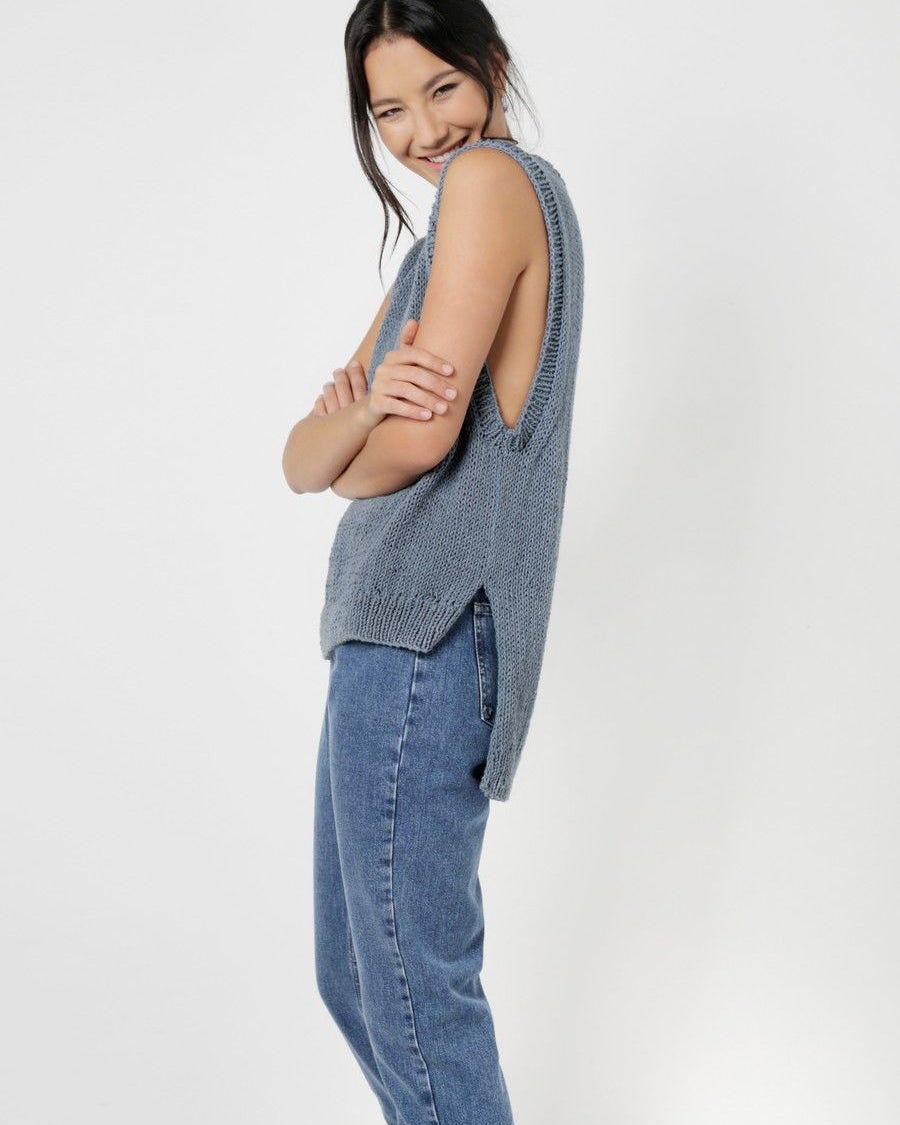 Tommy Topはアームホールが深く、バックが長いデザインで1針1針をメロウな