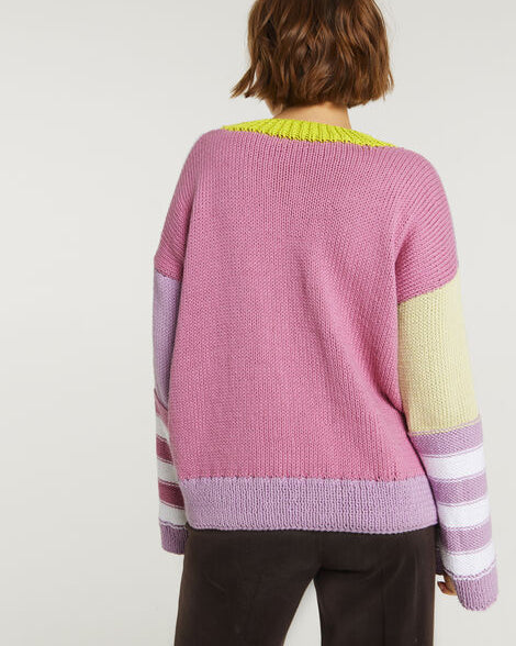 1目ゴム編み、メリヤス編み、裏メリヤス編みにブロックとストライプを