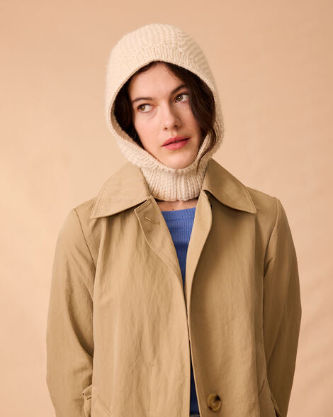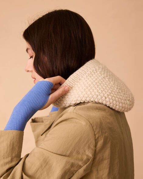 1目ゴム編みとかのこ編みを使って、このシックな中級レベルのバラクラバを6時間で