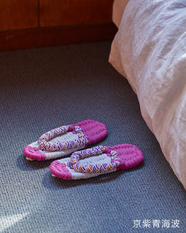 はんなり色の布ぞうりはおうちの様々なシーンで、 きっといろんな表情を見せてくれるはず。 汚れても手洗いでお洗濯ができるので清潔に使えます。 お子さんから女性、男性までサイズを選んで作れるので、贈り物にも最適です。