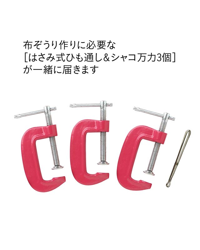 布ぞうり作りに必要な [はさみ式ひも通し&シャコ万力3個] のプレゼント付きです。
