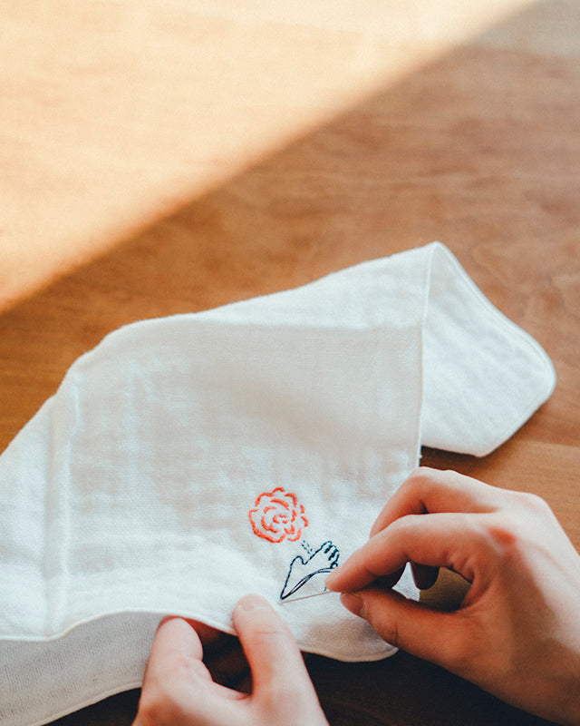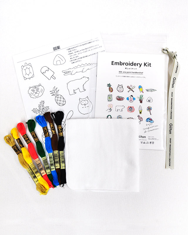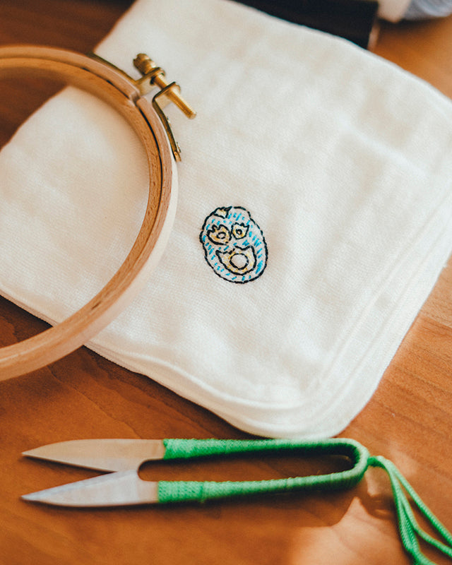 • EMBROIDERY KIT 【004.small embroidery】ガーゼハンカチにゆるいイラストを刺繍するキット