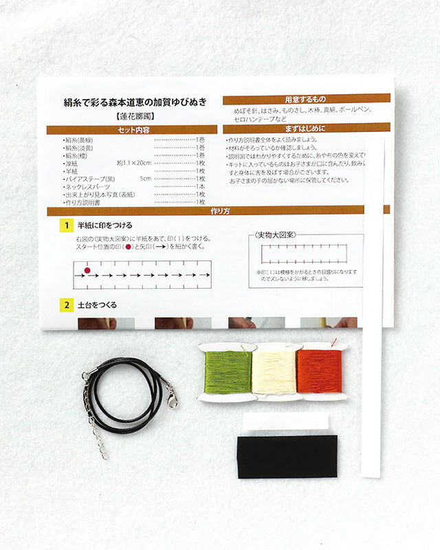 絹糸、バイアステープ、厚紙、半紙、ネックレスコード、作り方説明書など