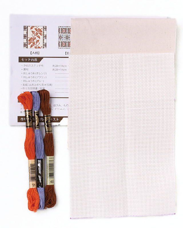 クロスステッチ布、刺しゅう糸、接着芯、作り方説明書など