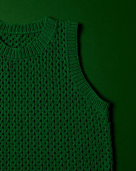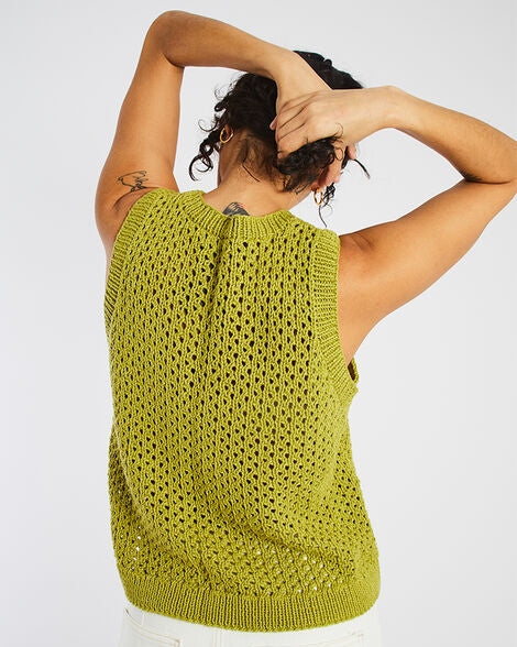 野心的な編み手にぴったりの中級レベルのタンクトッププロジェクトです。