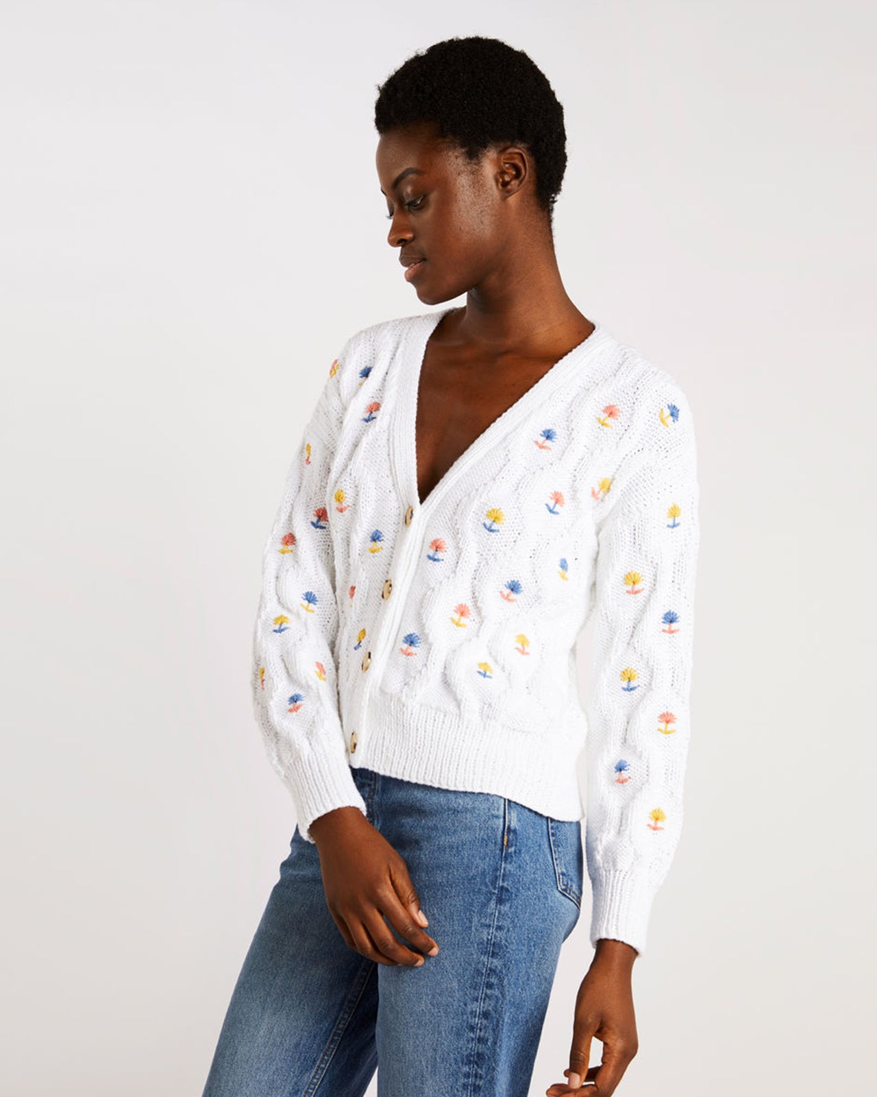 【FORTUNE CARDIGAN / PATTERN SET】ラブリーな花柄刺繍もするサマーカーディガンの編み物パターン