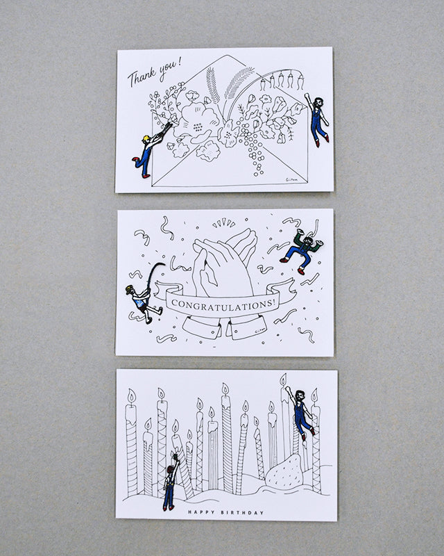 【GREETING CARD+WAPPEN】モノクロ/塗り絵をしてシールワッペンで完成させるグリーティングカード