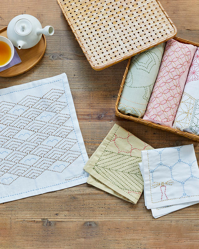 美しい色彩が広がる一目刺しの大判ふきん まとめて購入