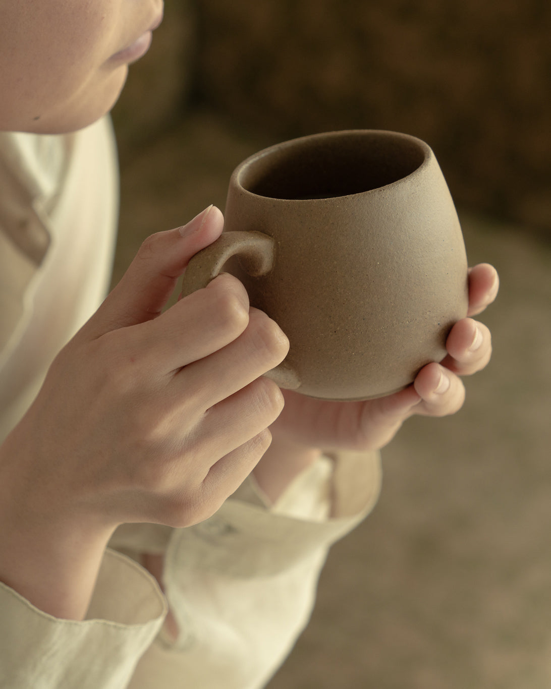 #再生備前シリーズマグカップは、廃棄される備前焼から生まれました。無釉薬の焼物由来だからこそ見える飾らない魅力は、個体ごとに小さく異なる素材感に表れています。使い込むことで生まれる風合いも含め、天然素材の魅力をご堪能ください。
