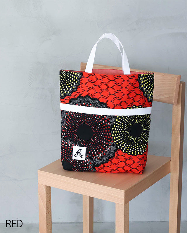 アフリカンプリントの「キテンゲ」の柄を活かした、カラフルで気分の上がるアイテムです。