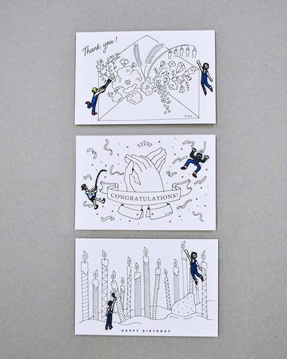 • 【GREETING CARD+WAPPEN】モノクロ/塗り絵をしてシールワッペンで完成させるグリーティングカード